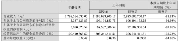 4月10日,创维数字(000810.SZ)发布2025年一季度报告,第一季度,公司实现营业收入17.99亿元,同比下降21.24%;归属于上市公司股东的净利润532.74万元,同比下降94.98%;归属于上市公司股东的扣除非经常性损益的净利润209.6万元,同比下降97.85%。